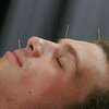 Pose d'une 30aine de fines aiguilles sur différents points du visage